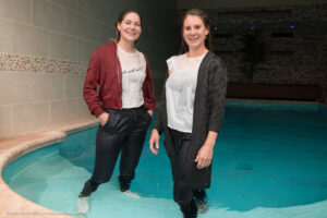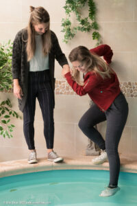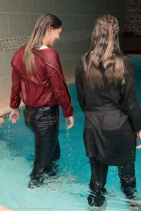 Membersite: Ella & Angelina in a pool in pants with jacket/cardigan and white tshirts, movie (incl. 4K) & images