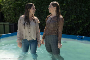Membersite: Ella and Angelina take an outdoor shower, then bathe in a small pool, wearing jeans and pants, movie (incl. 4K) & images
